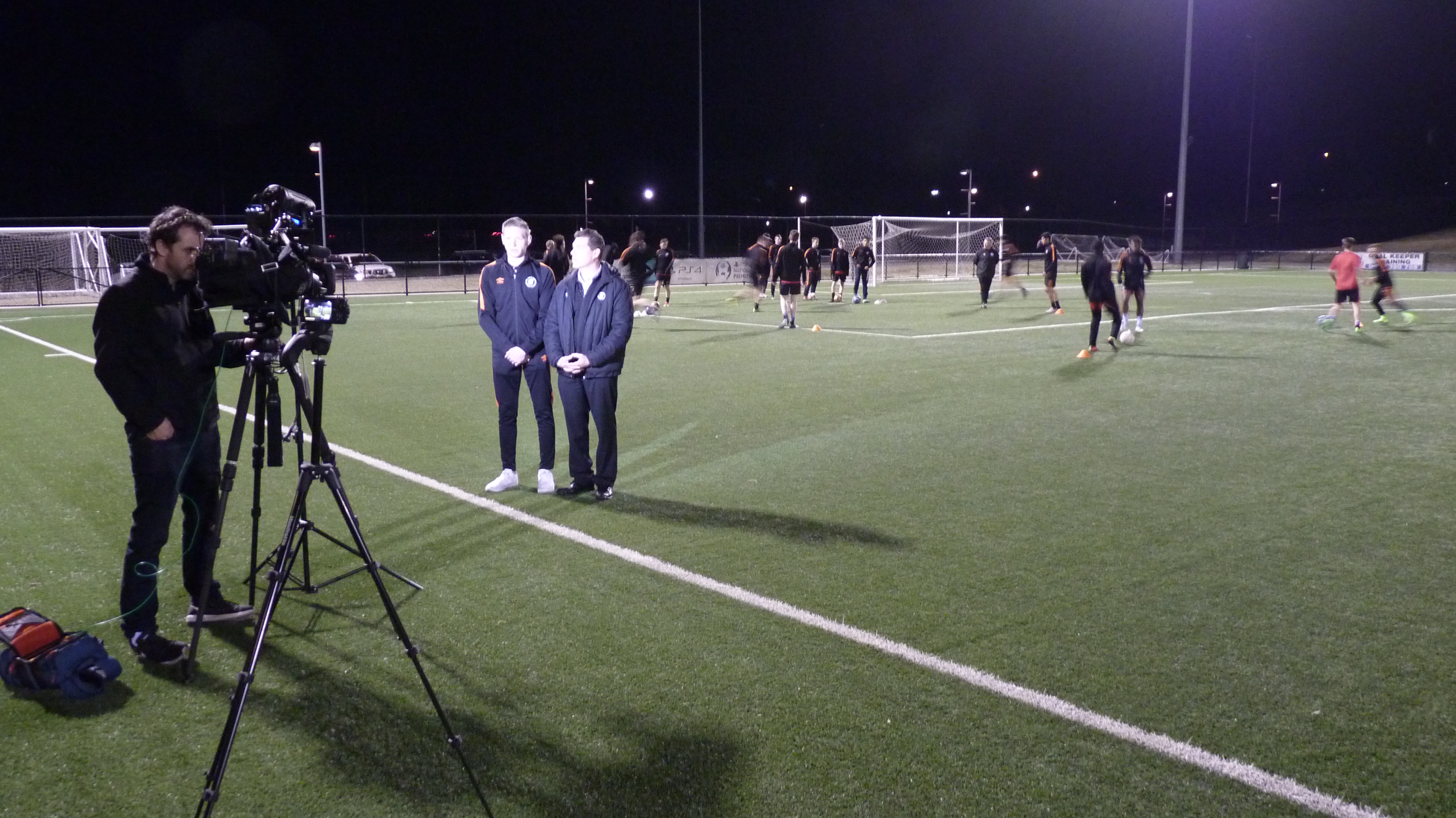 Father and son Denis and Domenic Nascimben went ‘LIVE’ on Fox Sports News last night to promote the first pilot program of the Don’t Mess with Drugs Foundation (DMWD). Denis is a club official, and Domenic the 19 year old Blacktown Spartans club goalkeeper were outstanding ambassadors for their club and Association when they spoke to host Tom Wilson back in the Fox Sport studio. With the Blacktown Spartans under 18 squad training in the background for their sudden death semi-final this weekend, the setting was perfect for the father and son to promote the program and their club. Neither of them missed a beat, they were articulate and well prepared and